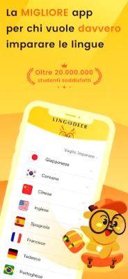 Desideri immergerti nelle affascinanti sonorità del giapponese, coreano, vietnamiano o mandarino? Lingodeer trasforma il sogno di padroneggiare una nuova lingua in una realtà concreta e gratificante. Con un approccio studiato per l'apprendimento indipendente, Lingodeer ti guida attraverso ogni fase, dall'introduzione ai sistemi alfabetici più complessi alla costruzione di un vocabolario robusto e alla comprensione delle strutture grammaticali. Dedicando appena 10 minuti al giorno, scoprirai un metodo efficace per allenare le tue abilità di lettura, ascolto, scrittura e conversazione, acquisendo la fluidità necessaria anche per viaggiare con sicurezza.