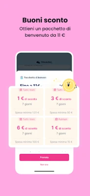 Scegliere TrainPal significa abbracciare la convenienza e la tranquillità. Ti assicuriamo il miglior prezzo sul mercato, con un rimborso della differenza se trovi una tariffa inferiore altrove. Grazie a funzionalità innovative come TripMatch (Biglietti Frazionati), puoi ottimizzare i costi sui tuoi percorsi, massimizzando il risparmio ad ogni viaggio. Non troverai mai costi nascosti: i tuoi biglietti hanno lo stesso prezzo delle compagnie ufficiali, senza alcuna commissione di prenotazione. TrainPal è il tuo motore di ricerca personale per le promozioni, individuando automaticamente offerte e supportando le tue carte sconto e codici promozionali. Ricevi aggiornamenti istantanei su binari, orari e ritardi, e gestisci i tuoi biglietti digitali direttamente nel tuo wallet, con la flessibilità di modificarli o cancellarli in autonomia.